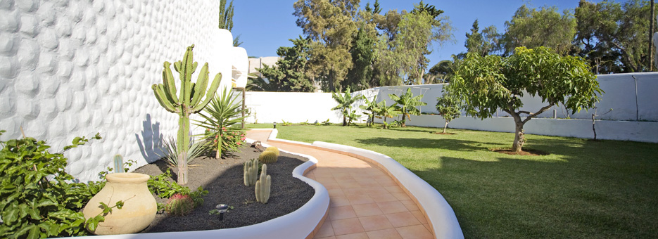 En el amplio jardín, mayormente cubierto y con un frondoso césped, hay árboles y plantas tropicales como plataneras, papayeros, árbol de mangos así como una gran variedad de plantas ornamentales y coloridas.